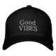 Positive Saying "Good Vibes" Black embroidered cap hat with grey threads. Perfect for people who like to wear positive words on their bodies
