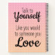 Cute wholesome magnet with the quote: "Talk to yourself like you would to someone you love" Positive affirmation and self talk to love yourself more. Pastel pink and peach orange background with white polka dots, girly and feminine.