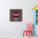 Vector cartoon illustration of a demon rising from a skull with heavy metal devil horn hand gestures.
