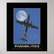 This positive poster shows an aeroplane with a full Moon just above, suggesting that even though we know it is 138,000 miles from earth, the Moon is still within our reach if we just believe it. In its Motivational Poster format, this great image is entitled "POSSIBILITIES". The poetic phrase at the bottom of the poster reads: