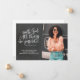 A modern Christian graduation announcement card, featuring the Bible verse Matthew 19:26 "With God all things are possible" in white modern script font, on a chalkboard background, next to a photo of the graduate. Personalise with graduation details in white sans serif font.