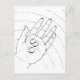 Hand open, with three jewels. The sun rays are bouncing arcing in the background. Colour this item yourself using felt-tip or gel pens, pencils, or other medium, you may colour this postcard with your own artistic style. Or, let the recipient of the card do the colouring.