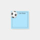 Post-it-Notes shown in a sky blue colour with a sports soccer ball print.