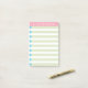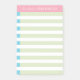 This customisable 4 x 6 inch Post-it® Notes template has green stripes with blue check-off boxes topped and a pink banner topper, enjoy!