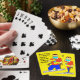 Funny cartoon of a man holding a hand of playing cards whilst wearing Personal Protective Equipment consisting of yellow rubber gloves and a blue face mask. Caption reads 'Name hoped that his PPE wouldn't affect his ability to shuffle'. Cards are called Post Lockdown Pack of Cards. Easily personalize these playing cards by editing the template text. Thank you for viewing my cartoon designs!