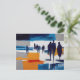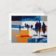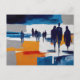 Loose, confident brushstrokes and geometric colour fields give the piece a modern, painterly structure. The figures appear anonymous and universal, emphasizing shared experience rather than individuality. There is a sense of transition in the scene—between weather and calm, movement and pause—making the artwork emotionally resonant and quietly powerful.