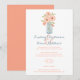 This blue mason jar, peach flowers, and babies breath theme inspired wedding reception only invitation has a smoky blue mason jar, peach watercolor flowers, and creamy white babies breath flowers in it. It would be perfect for a wedding reception taking place after the newlyweds return from a destination wedding. If you require any matching items in this design, or if you need help customising it with your info, please email niteowlstudio@gmail.com. ****PLEASE NOTE that everything will print as it appears on your monitor.