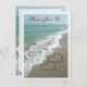 Post-wedding reception invite for couples who had a destination, cruise or beach wedding, but want a reception party in the hometown for those who were unable to travel to the actual ceremony. Sand Hearts Beach picturesque and beautiful scenic image of clear aqua turquoise ocean water, with white waves crashing on the tan sand beach. Two interlocking hearts symbolise eternal love!
