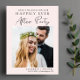 Elegant light pink save the date postcard for your elopement or private wedding reception. The front features your day photo and "Save The Date For Our Happily Ever After Party" in a mix of simple typography and a modern script. Under your photo, add your first names and reception date. On the reverse side, personalise your save the date message and add your married names in a signature-like script.