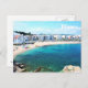 Postacrd with beach and sea in Blanes city on Costa Brava, Spain