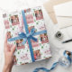 Photo wrapping paper, personalised with 2 of your pictures and postage stamps decorated with christmas trees, holly and festive wording (Happy Holidays, Merry Christmas and Merry & Bright). Two of the stamps have your photos on them, displayed as one vertical portrait and one square, in a repeat pattern along the length of the wrapping paper. The postage stamps sit on an all over background pattern of christmas trees. Please browse my store for similar designs, with and without photos.