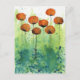 This item is a postcard featuring my watercolor painting of flowers. It features a field of orange poppies against a green background speckled with teal. Modern style colour palette. This would be a lovely postcard for someone who likes cottagecore modern style or scandinavian decor. Be sure to check out the rest of my shop where I have more midcentury modern art https://www.zazzle.com/store/popwheel
