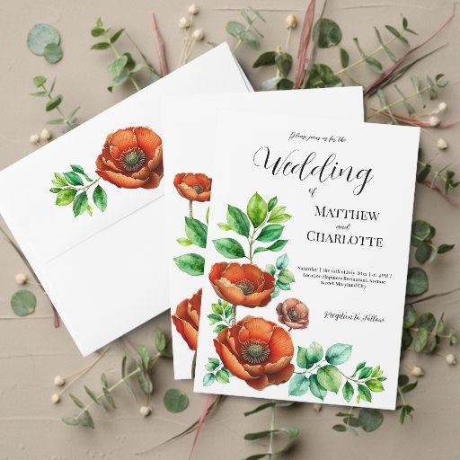 Sublime Watercolor Red Poppies in Vintage Style Designed by Sonia Chivarar