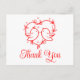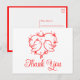 This charming lovebirds postcard is a delightful way to express your gratitude. The delicate red heart illustration, along with the simple red and white colour palette, creates a soft and romantic appearance that is perfect for outdoor summer weddings or spring garden celebrations. Ideal for nature lovers, this design combines boho elements with adorable bird artwork. It’s a lovely way to send your thanks with a touch of extra love. This card can also be personalised for various events.