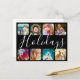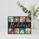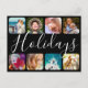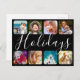 Solid black personalised 8 rounded square photos postcard with holidays text. Send while on vacation.