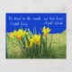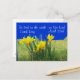 Spread the message "Be kind to the earth - I live here!" - send this postcard showing an yellow daffodil against a blue background. "Earth Day ... April 22nd" frames the plant at an angle in the upper right and left.