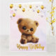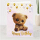 Send the warmest birthday wishes with this irresistibly cute greeting card featuring an adorable teddy bear surrounded by golden and pearl balloons. With soft pastel tones and big sparkling eyes, this charming design is perfect for kids, teens, or anyone who appreciates a touch of sweetness on their special day. The hand-drawn style adds a heartfelt touch, making this card ideal for birthdays, baby showers, or just to brighten someone’s day. Whether you’re gifting it with a present or mailing it with love, this greeting card will melt hearts and bring a smile every time. Printed on high-quality paper and customizable inside, it’s as thoughtful as it is beautiful.