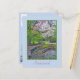 Postcard featuring photo in Spring of Inniswood Metro Gardens in Westerville, Ohio. Bench beneath redbud tree and tree with white blossoms and a small pond and rock garden. Customisable.