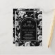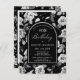 Very elegant black and white rose floral pattern creates an 90th birthday postcard invitation template. White text and calligraphy are framed by a black arch edged in white. This item is part of the Black and White Rose Floral Collection. it contains templates to create a unique invitation suite, welcome signs and party decorations.