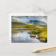 Postcard of Scottish Highlands landscape. The Highlands in Scotland are a nation beauty spot, they are wild and remote wilderness of stunning mountain landscapes and vistas. The photograph shows a river lake with dramatic lighting and mountains in the background.