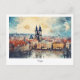 Postcard with Prague twilight, scenic mediaeval city in Bohemia, Czech Republic.