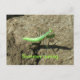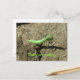 Bright green praying mantis is sunning on a rock. His long black shadow gives depth to the image. Regale your friends and family with your summer experiences via postcard.
