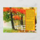 This postcard features a beautiful tree in all of its autumn glory, beside a white picket fence. To the right is quoted Psalm 1:1-3, once of my favourite Scripture portions, which reads: "Blessed is the man that walketh not in the counsel of the ungodly, nor standeth in the way of sinners, nor sitteth in the seat of the scornful. But his delight isin the law of the Lord; and in his law doth he meditate day and night. And he shall be like a tree planted by the rivers of water, that bringeth forth his fruit in his season, his leaf also shall not wither; and whatsoever he doeth shall prosper."