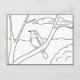 Robin sitting on branch of tree. Horizon and cloud in background. Bush in lower right corner. Colour in your own style, using ink, paint, crayons, or ??