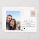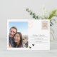 Share your exciting news in style with this modern photo Save the Date postcard. Featuring a custom photo layout, elegant script fonts, and minimalist heart details, this wedding announcement is perfect for couples who want a chic and personal touch. Printed on high-quality cardstock, it’s ideal for mailing to friends and family. Customise with your names, wedding date, and location for a timeless keepsake.