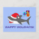 If you like sharks, you will love this postcard with image of a cute shark and Christmas presents. The shark is wearing a Santa hat and the text says Happy Holidays. This shark design is one of my first designs and one of my favourites. The design is customisable and you can change the text, or the colour of the background.