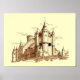 Reproduction of stippled pen & Ink drawing of Alcazar - castle in Spain. Original artwork by John A. Muir.