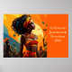 Poster is shown with a photo art print of a woman in celebration of Juneteenth.
