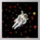 Astronaut floating among the "stars" Red, yellow, green fireworks against black sky make up the background for the astronaut in white extra vehicular suit.