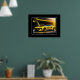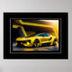 Poster shown with a photo print of a beautiful yellow luxury sports car.