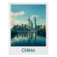 Admire the vibrant modernity of China with this poster featuring the Shanghai skyline. Iconic skyscrapers reflect on the calm river, creating a sleek and dynamic urban scene. Perfect for contemporary wall art.