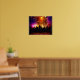 This poster features a art print of a beautiful cityscape with fireworks.