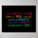 This poster has text design every home should have a dog in bright bold colours for wall art decor in home or office.
