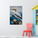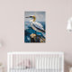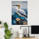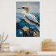 An artistic poster depicting a seabird specimen on a rock above the sea