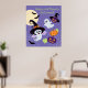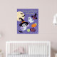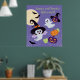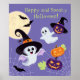 Poster "Happy and spooky Halloween!" with cute pumpkins, ghost and bats.