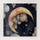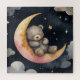 A dreamy watercolor illustration of a sleepy grey bear resting on a crescent moon, surrounded by stars in a soft night sky. Perfect for nursery decor, children's gifts, and anyone who loves adorable animal art with a calming night-time theme. Ideal for cosy home accents or baby room decorations.