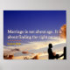 Motivational poster with the quote: "Marriage is not about about age. It is about finding the right person." - Sophia Bush Do it today or do it later, all that matters is that it is with the right person. There is really no right age. Gift this poster to newly weds, loved ones or add it to your living room.
