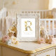 This poster features the letter R in a romantic and delicate design, adorned with an elegant floral motif and a subtle gold glitter effect. The fine details and soft color palette create a cozy and sophisticated atmosphere, adding a touch of tenderness and timeless style to the nursery decor. Each floral element and the golden sparkle combine to reflect light and warmth, offering a harmonious and elegant visual appeal.