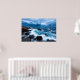 Beautiful print of ocean wave crashing on rocky shore line.