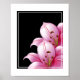 Poster shown with a pretty pink lillie's print on a black background colour.