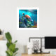 Poster is shown with a photo art print of a beautiful sea turtle.