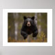 Poster shown with a photo print of a black bear jumping in the air in Yellowstone National Park, USA.