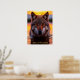 Poster shown with a photo print of a wild wolf in the water in Yellowstone National Park, USA.
