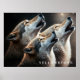 Poster shown with a photo art print of howling wolves in Yellowstone National Park, USA.