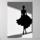 A sleek black and white fashion silhouette poster featuring an elegant outline of a figure in flowing dress against subtle texture. Perfect for boutiques, wardrobes, or living rooms. Available in framed or bare prints, multiple sizes. Elevate your decor with timeless style.
