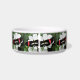 Ceramic pet food bowl for your dog or cat that features the photo image of a black Postman Butterfly with red and white markings, resting on a white flower and printed in a repeating pattern. Select your pet bowl size.